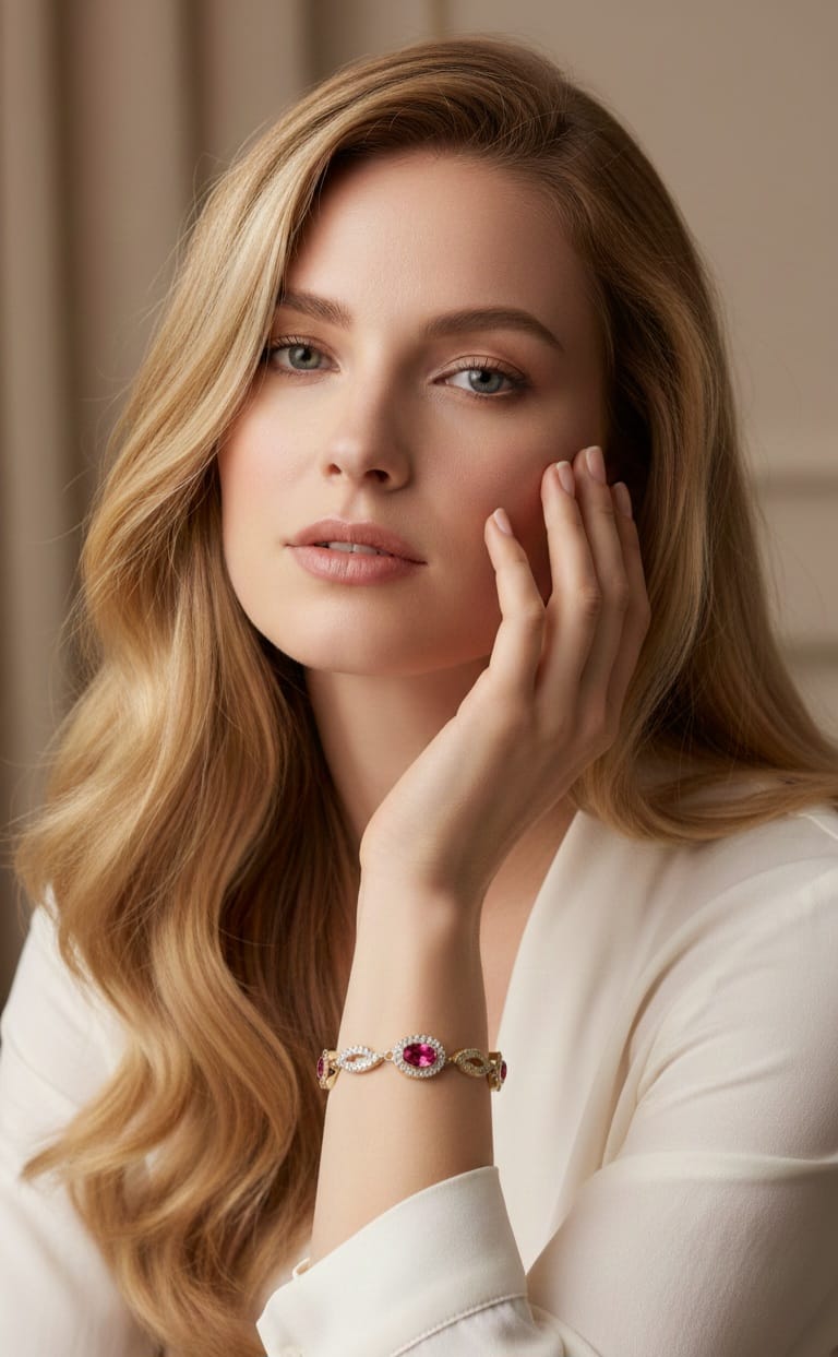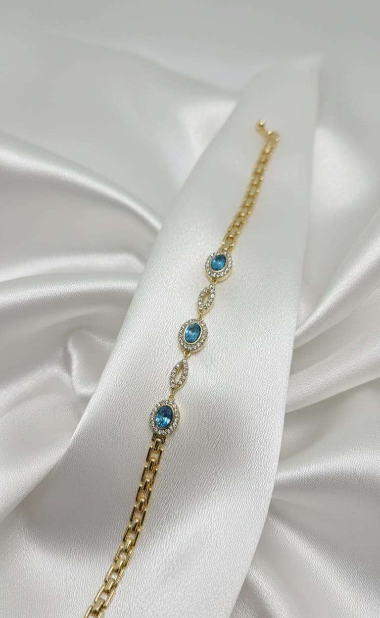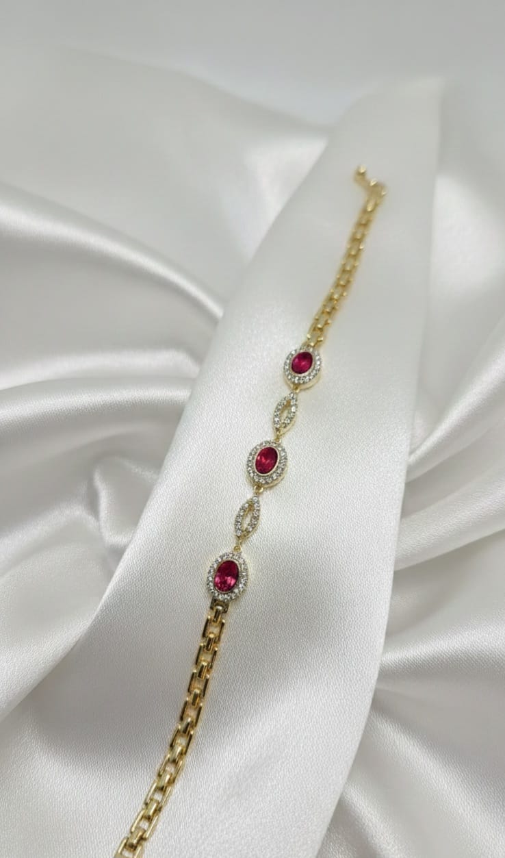Un gioiello che incanta per la sua raffinata simmetria e l’intensità dei suoi colori. Il Bracciale Ninfa Reale presenta tre ovali centrali impreziositi da pietre sfaccettate di alta qualità, incorniciate da un pavé di zirconi che ne amplifica la luce naturale. La maglia geometrica a specchio conferisce un tocco di modernità a un design di ispirazione classica, rendendolo l’accessorio perfetto per occasioni indimenticabili.”