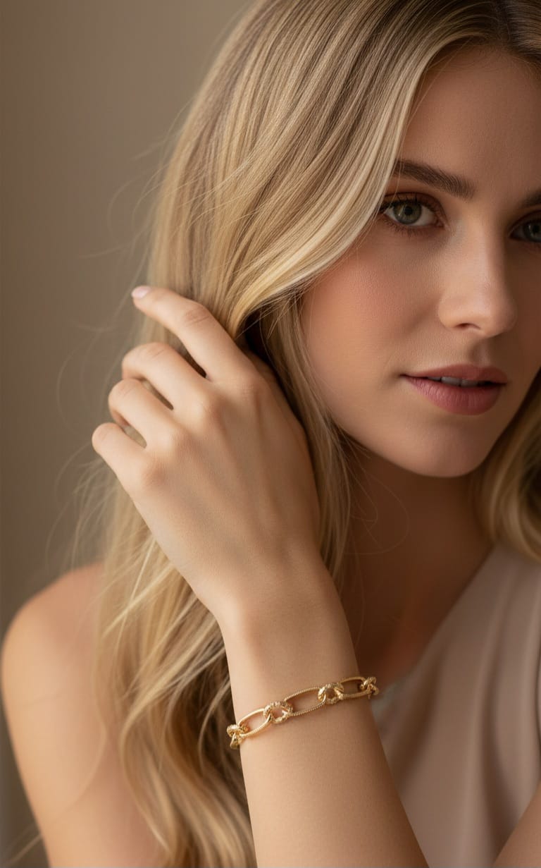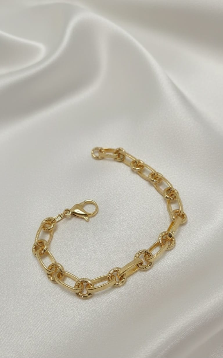Un gioco di contrasti che definisce lo stile contemporaneo. Il Bracciale Dualità Elegante unisce la perfezione degli anelli lisci alla ricchezza visiva degli anelli con texture diamantata, creando un ritmo visivo unico e sofisticato. È un gioiello versatile, pensato per chi cerca un accessorio che sia al tempo stesso classico e moderno, capace di illuminare il polso con una luce multisfaccettata.”