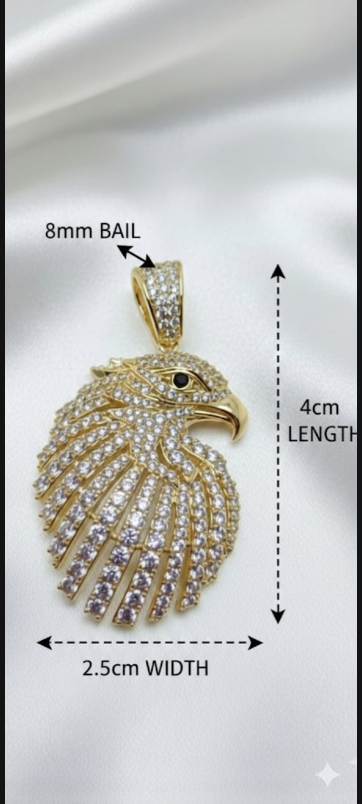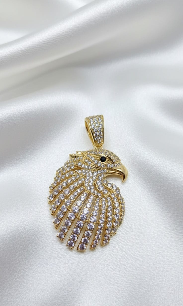 Un gioiello di straordinaria potenza e raffinata eleganza. Questo esclusivo Ciondolo Aquila Reale a forma di testa d’aquila è realizzato in Oro laminato di altissima qualità. Inoltre, l’intero profilo del maestoso rapace è impreziosito da un pavé di cristalli bianchi ultra-brillanti incastonati a mano. Infatti, lo sguardo fiero è sottolineato da un cristallo nero intenso che dona un carattere unico e magnetico al design.