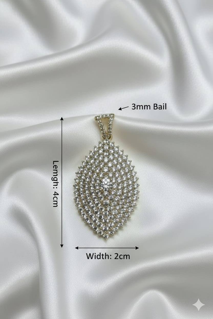 ​Dettaglio Tecnico: 3mm Bail (Argolla) dal design triangolare decorato con zirconi, studiato per un passaggio fluido della catena.