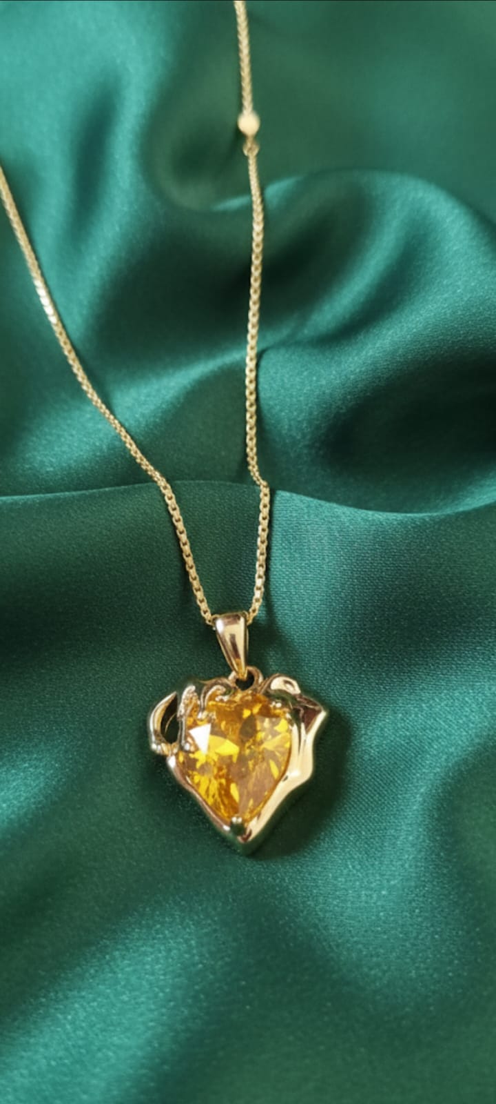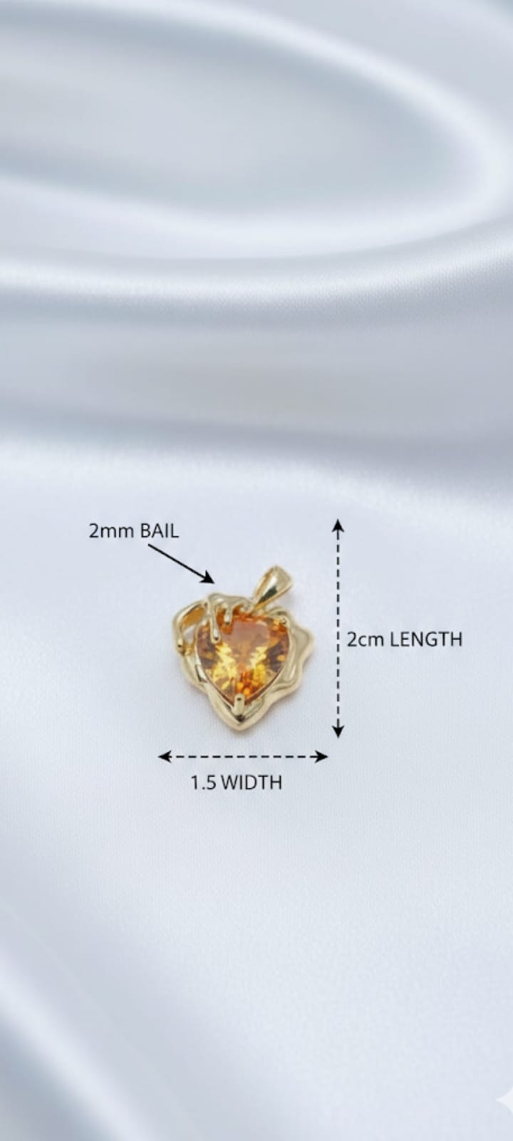 ​Design: Cuore con cristallo centrale color ambra e finitura lucida.
