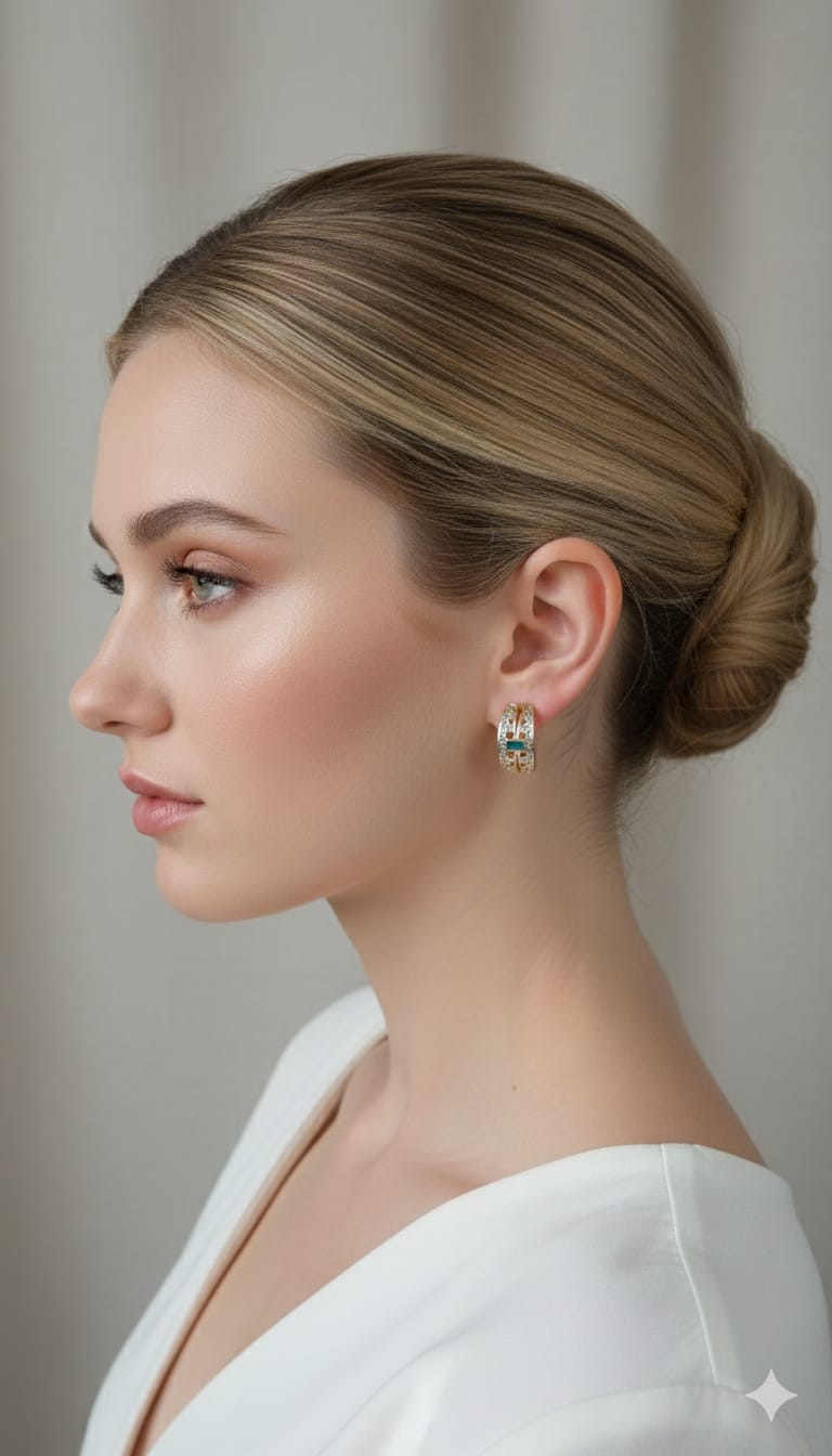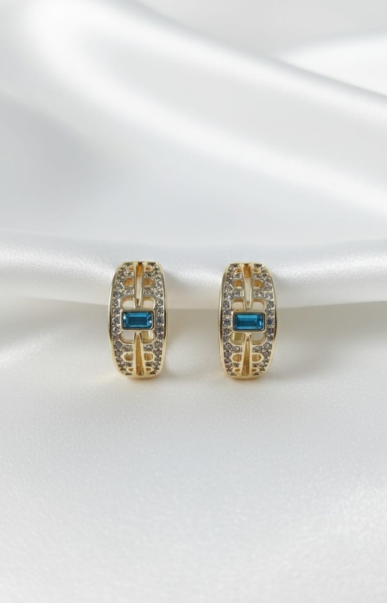 Gli Orecchini Aranno sono un inno all’eleganza geometrica e al prestigio. Realizzati in Oro Laminato 14K, questi orecchini a cerchio presentano una fascia larga impreziosita da una raffinata trama a nido d’ape e pavé di cristalli. Il punto focale è un magnifico cristallo centrale a taglio smeraldo, che conferisce un “status” di alta gioielleria e una luce magnetica. È il pezzo perfetto per chi cerca un accessorio distintivo che unisca modernità e lusso classico.