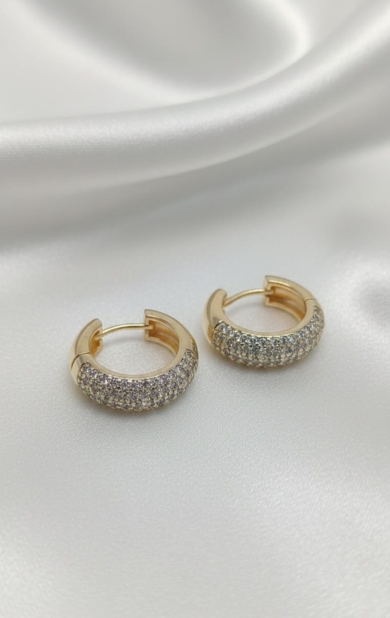 Afferma la tua presenza con gli Orecchini Bedretto, una celebrazione di luce e design contemporaneo. Questi cerchi bombati in oro laminato 14K sono interamente rivestiti da un lussuoso pavé di zirconi bianchi, creando una superficie brillante che cattura l’attenzione da ogni angolazione. Il loro volume audace ma raffinato comunica uno status di successo e sicurezza, rendendoli il pezzo forte per i tuoi eventi più esclusivi. Con i Bedretto, non indossi solo un gioiello, ma un’aura di pura eleganza.