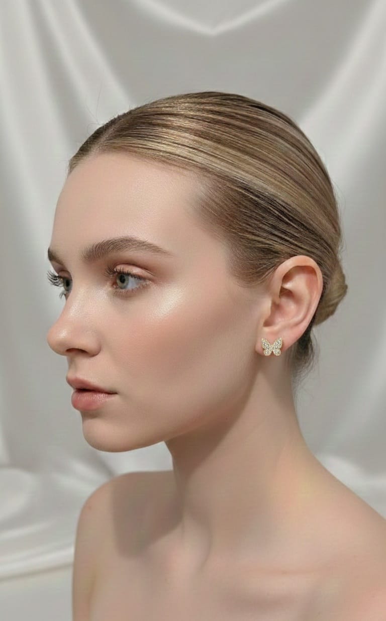 ​Eleva il tuo stile con la delicatezza e il prestigio degli Orecchini Farfalla, un gioiello che cattura l’essenza della trasformazione e della bellezza pura. Realizzati in pregiato Oro Laminato 14K, questi orecchini a lobo non sono solo un accessorio, ma una dichiarazione di “status” ed eleganza senza tempo. La superficie è interamente impreziosita da un pavé di cristalli brillanti che riflettono la luce con ogni tuo movimento, offrendo quella brillantezza magnetica che definisce la donna moderna e sofisticata. Un dettaglio di lusso discreto ma potente per chi desidera splendere con grazia.