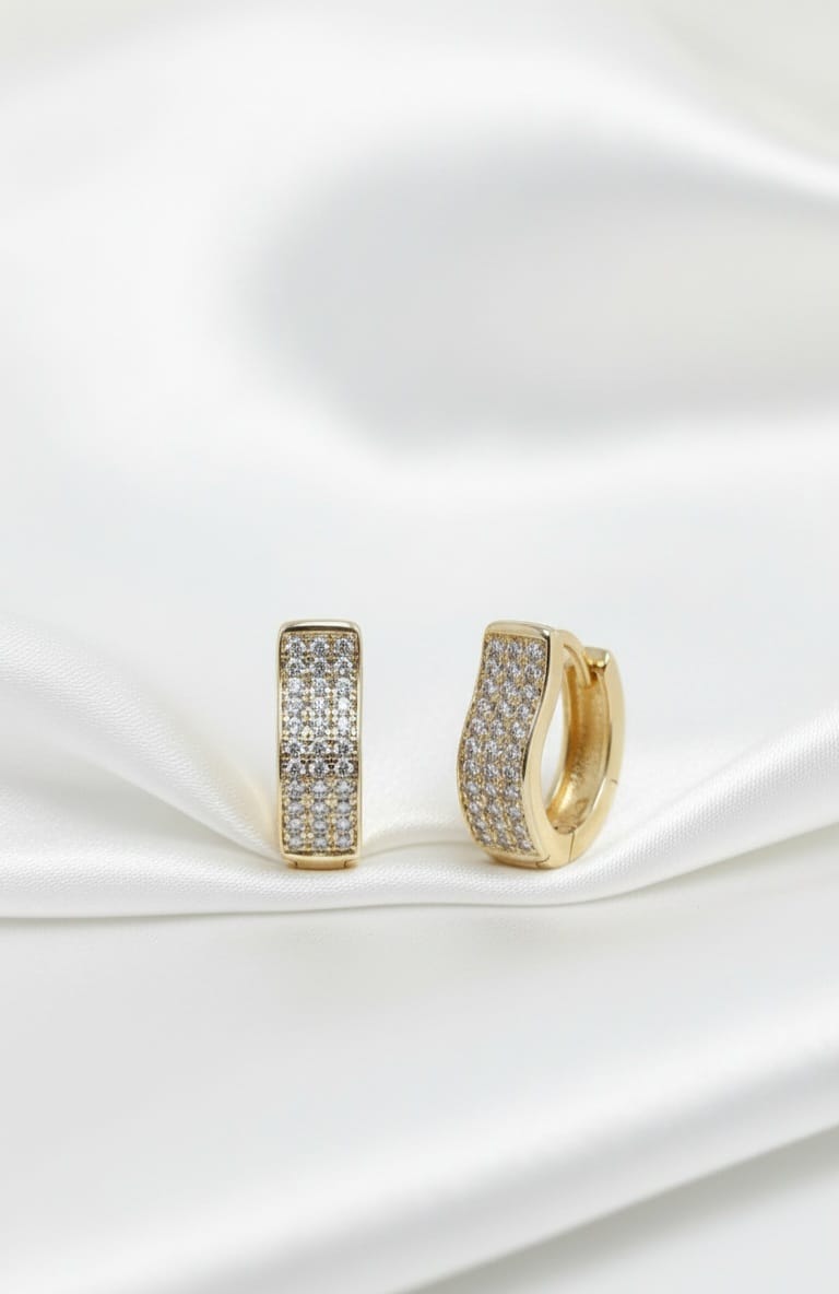 Distinguerti non è mai stato così naturale con gli Orecchini Isone, un pezzo esclusivo che ridefinisce il concetto di cerchio moderno. Realizzati in pregiato oro laminato 14K, questi orecchini presentano un profilo dolcemente ondulato che segue le linee del viso, creando un movimento armonioso e unico. La parte frontale è impreziosita da un fitto tappeto di zirconi bianchi, incastonati per offrire una brillantezza continua e setosa. Pensati per chi vive il lusso come uno status quotidiano, gli Isone sono l’accessorio definitivo per chi non accetta compromessi tra audacia e raffinatezza.
